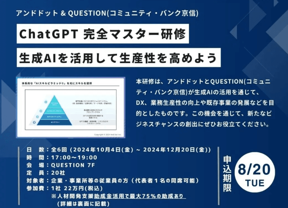 QUESTION(コミュニティ・バンク京信)とアンドドットが生成AIを業務活用できる人材を育成する「生成AIスクール」を設立