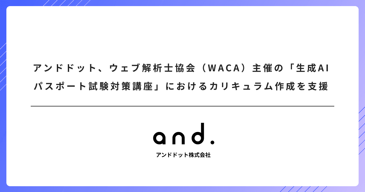アンドドット、ウェブ解析士協会(WACA)主催の「生成AIパスポート試験対策講座」におけるカリキュラム作成を支援