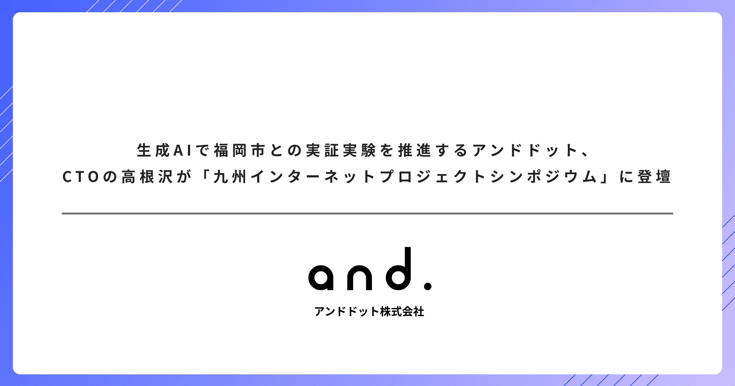 生成AIで福岡市との実証実験を推進するアンドドット、CTOの高根沢が「九州インターネットプロジェクトシンポジウム」に登壇