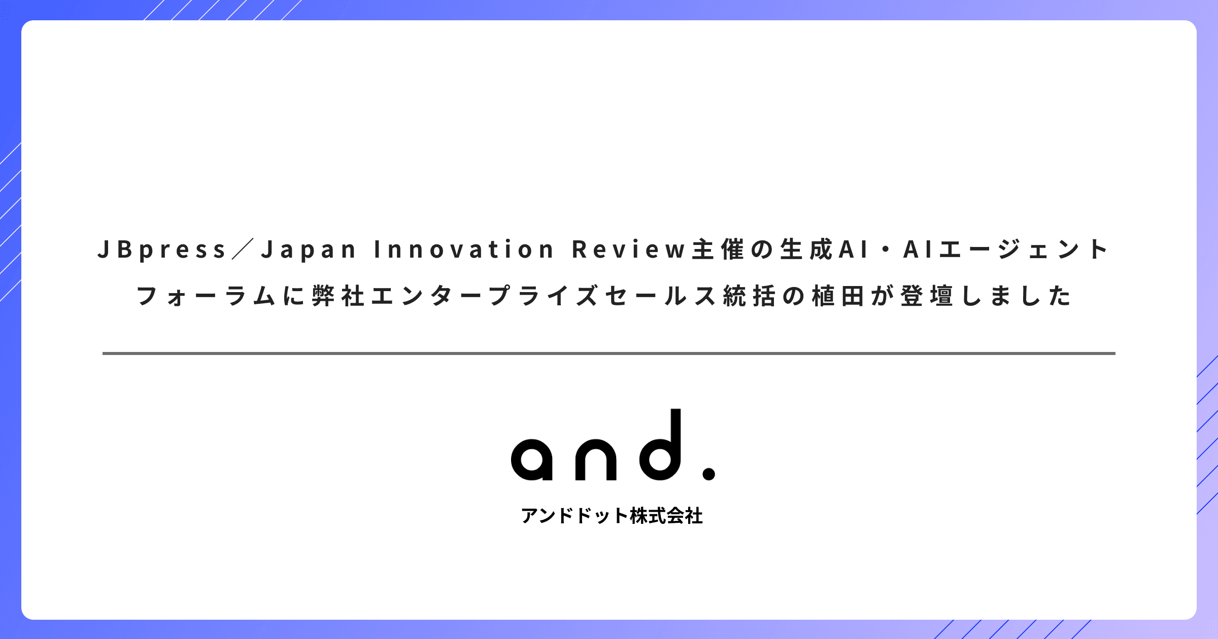 JBpress/Japan Innovation Review主催の生成AI・AIエージェントフォーラムに弊社エンタープライズセールス統括の植田が登壇