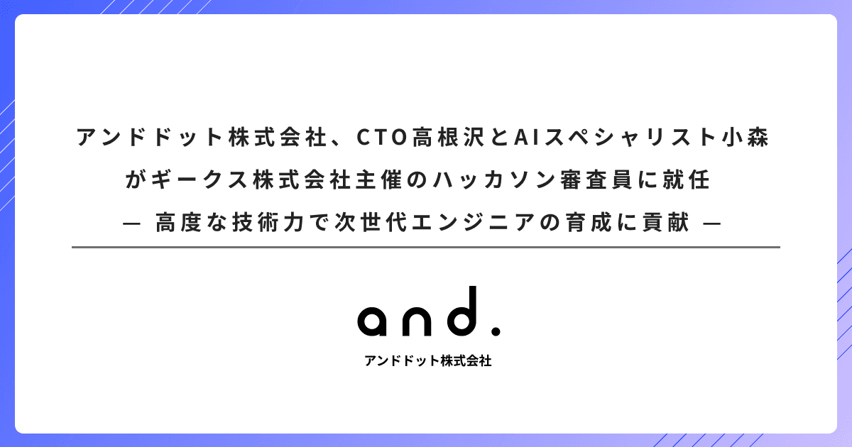 アンドドット株式会社、CTO高根沢とAIスペシャリスト小森がギークス株式会社主催のハッカソン審査員に就任 — 高度な技術力で次世代エンジニアの育成に貢献 —