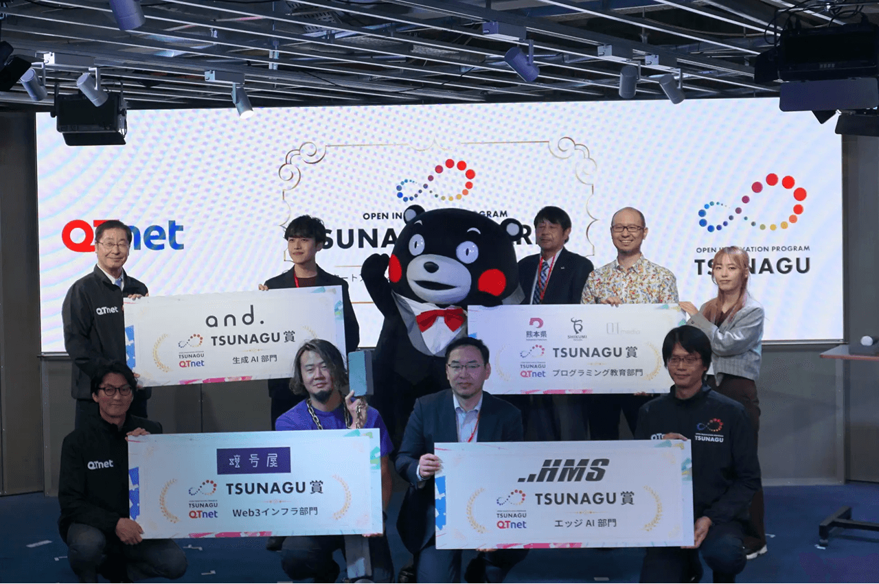 QTnetオープンイノベーションプログラム「TSUNAGU」は、株式会社QTnetが新たな事業を共創するオープンイノベーションプログラムです。スタートアップをはじめとした企業・個人の優れたビジネスアイデアや技術と、QTnetの経営資源を組み合わせ、新たな事業・サービスを共創することをも目指しています。第4回目となる今回は、今後成長が見込まれるAI、Web3、XRなどの分野での公募が多数集まりました。生成AI部門では、「誰でも生成AIを使いこなせる」ことを目的とした生成AIプラットフォーム「QT-GenAI」の実績が評価され、弊社アンドドットが選出されました。