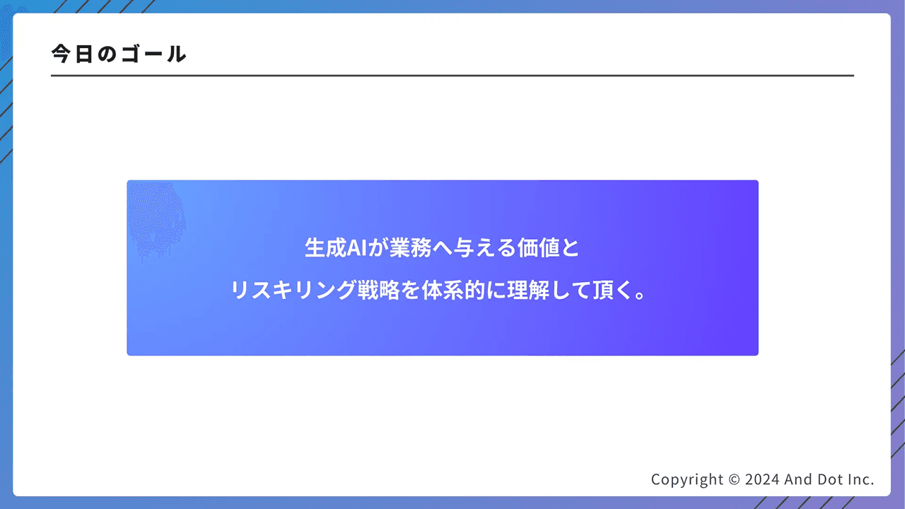 タイトル:【生成AI x リスキリング】生成AI時代に必要な3大スキルと活用推進のベストプラクティス