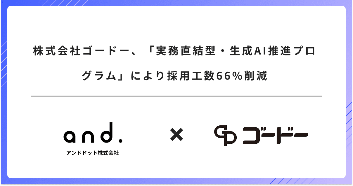 AXプロデュース事業を展開するアンドドット株式会社(本社:東京都渋谷区、代表取締役:茨木 雄太、以下:アンドドット)は、株式会社ゴードー(本社:東京都新宿区、代表取締役社長:橘 東吾、以下:ゴードー)に対して、実務におけるAI活用の定着を目的とした、全2回にわたる「実務直結型・生成AI推進プログラム」を実施いたしました。